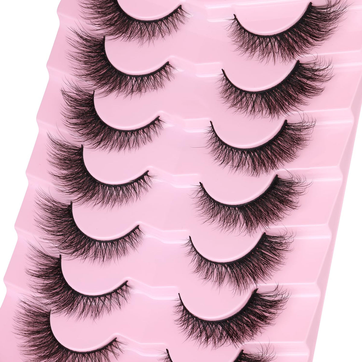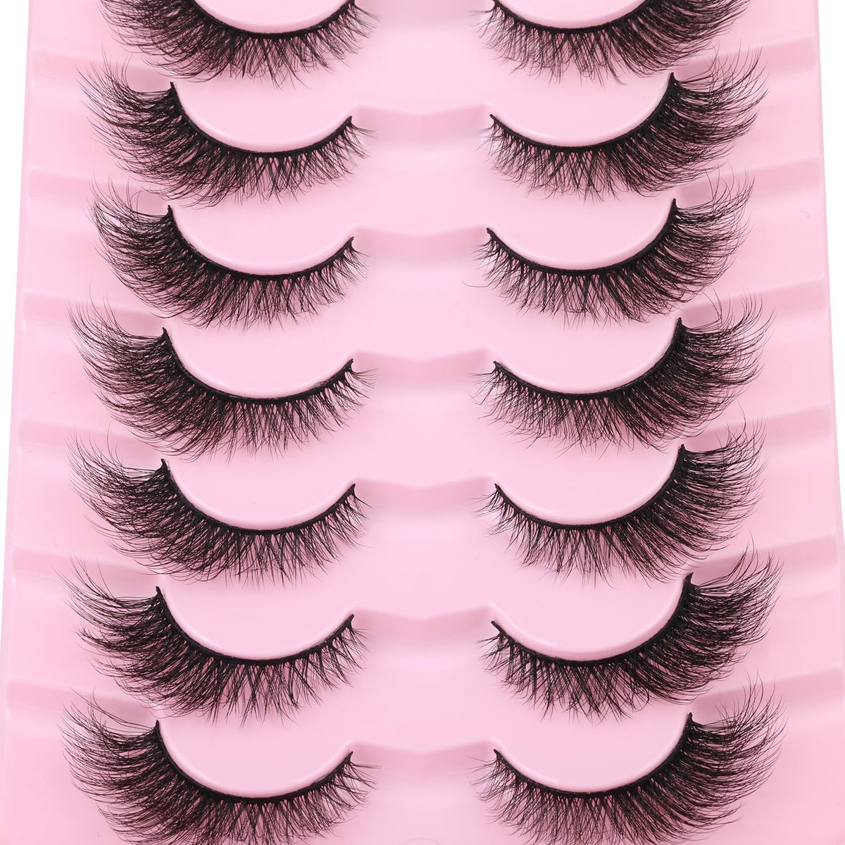 False Lashes Natural Look Faux Mink Eyelashes Wispy Fox Eye Lashes That Look Like Extensions 3D Mink Lashes Natural Strip Lashes Pack 7 Pairs