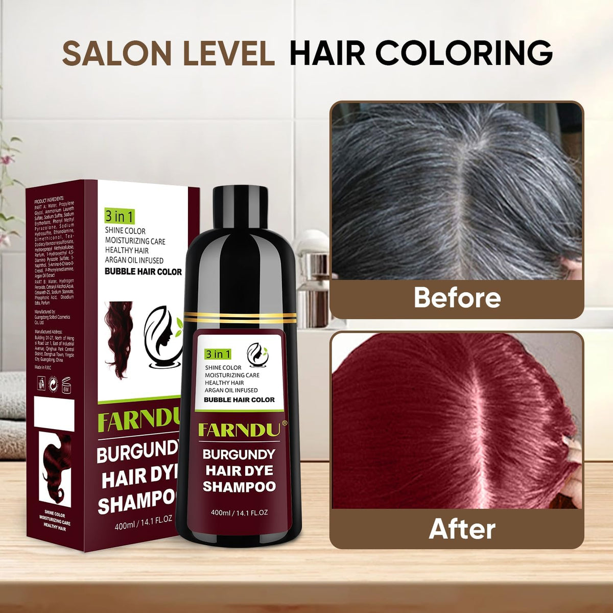 Farndu Red Burgundy Hair Dye Shampoo 3-in-1 for Women Men Gray Hair Coverage, Natural Herbal Ingredients 14.1Oz