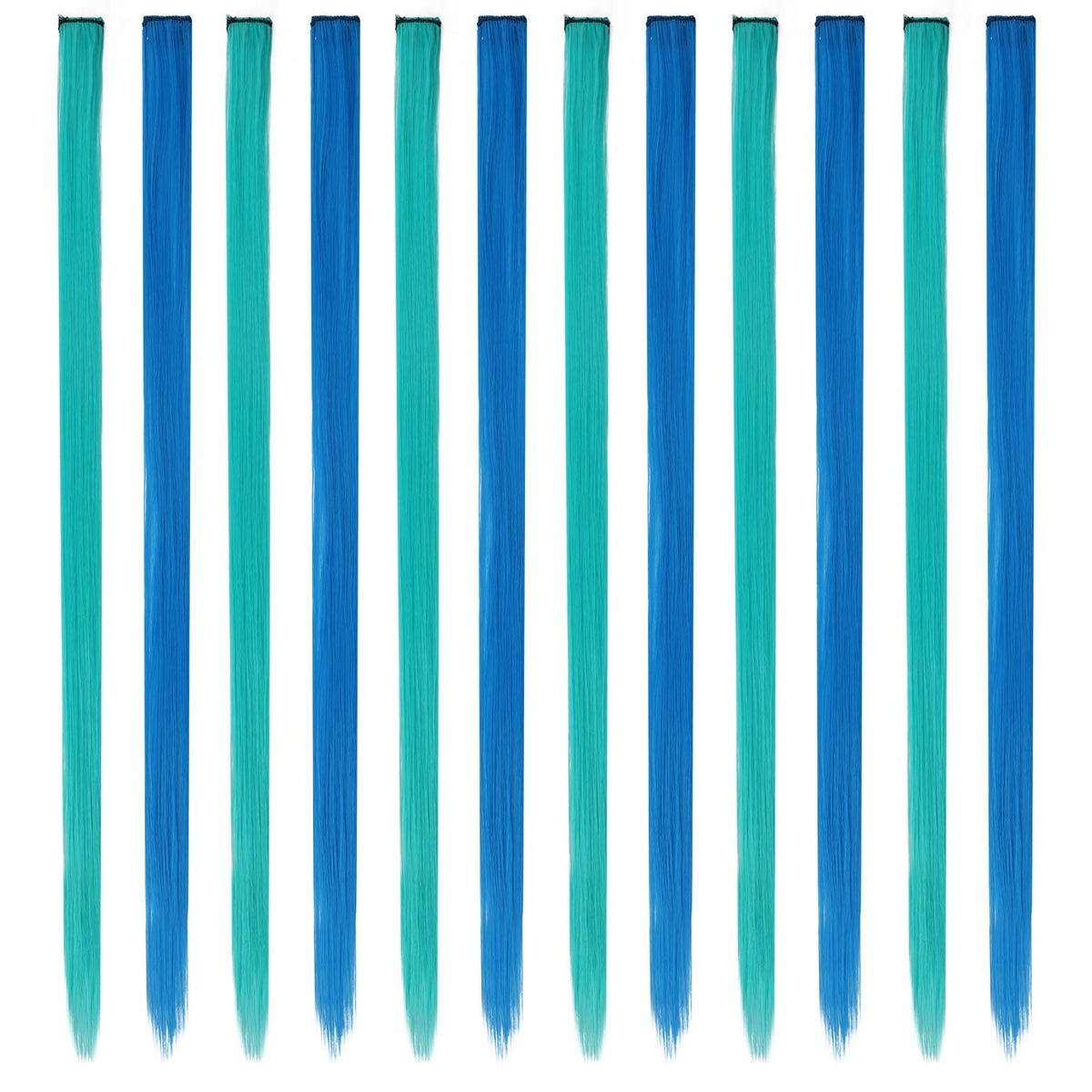 FESHFEN Colored Hair Extension, 12 PCS Teal, Blue Hairpiece for Girls Princess Party Highlight Colorful Straight Hair Extensions Clip in Costumes Hair Piece for Girls Dolls, 20 inch