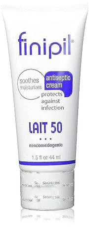 Finipil Lait 50 Antiseptic Cream is a post hair removal and ingrown hair treatment that cools and soothes the skin. This 1.5-ounce cream is designed to provide relief and comfort after hair removal procedures.
