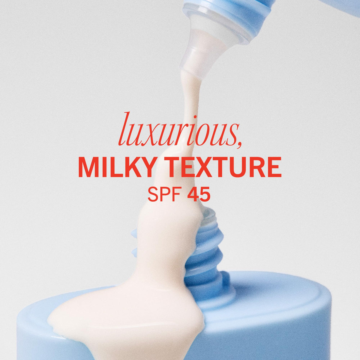 Protect your skin with First Aid Beauty Hydrating Sunscreen Milk, a broad-spectrum SPF 45 formula enriched with colloidal oatmeal. This non-comedogenic sunscreen provides 24-hour hydration and nourishment.
