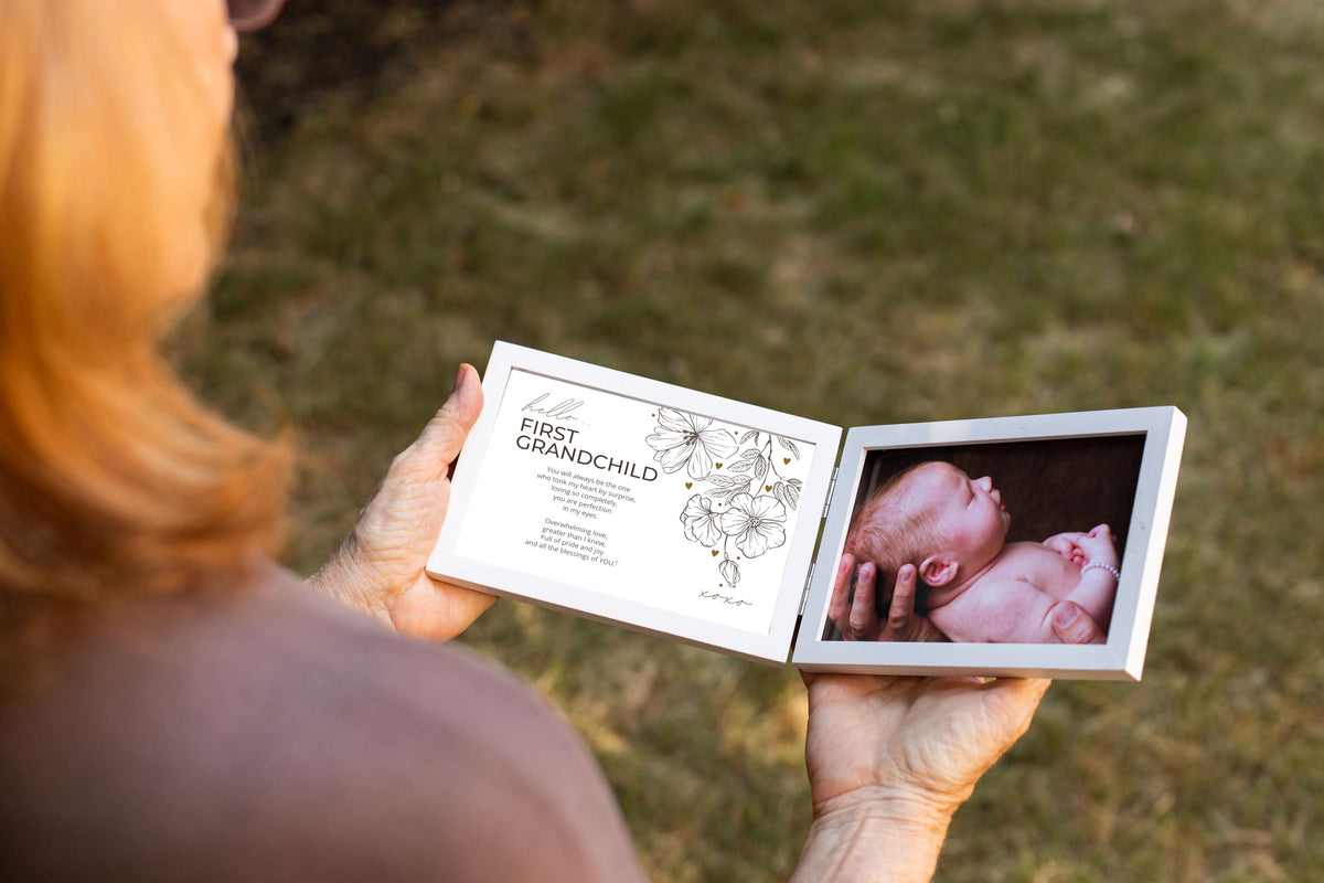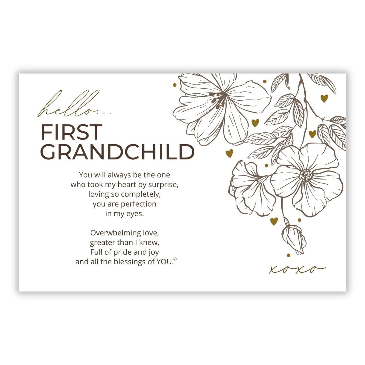 First Grandchild Gift for New Grandparents Poetry Frame is a sentimental gift that celebrates the joy of becoming grandparents. This white frame features a heartfelt poem and space for a cherished photo, making it a perfect keepsake for new grandparents.