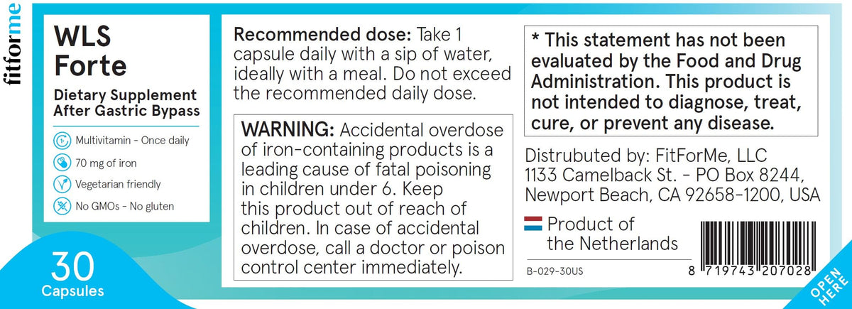 FitForMe Bariatric Multivitamins with Iron After Gastric Bypass is a one-a-day WLS forte capsule providing 90 days supply of vitamins & minerals. Scientifically proven to support post-gastric bypass health needs.