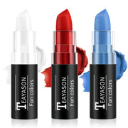 FIVEFULU Red Blue White Face Paint Halloween Makeup Kit, Matte Lipstick Set Eye Black Stick, Usa Themed Accessories Flag Color, Body Paint Face Makeup for Halloween Clown Harley Quinn Joker Makeup