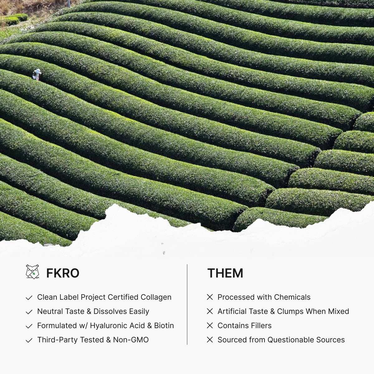 FKRO Collagen Plus combines Biotin, Hyaluronic Acid, and Vitamin C for comprehensive hair, skin, nails, and joint support. This naturally sourced Type I & III Hydrolyzed Collagen Powder in a 10.8oz container offers 30 servings for your daily needs.