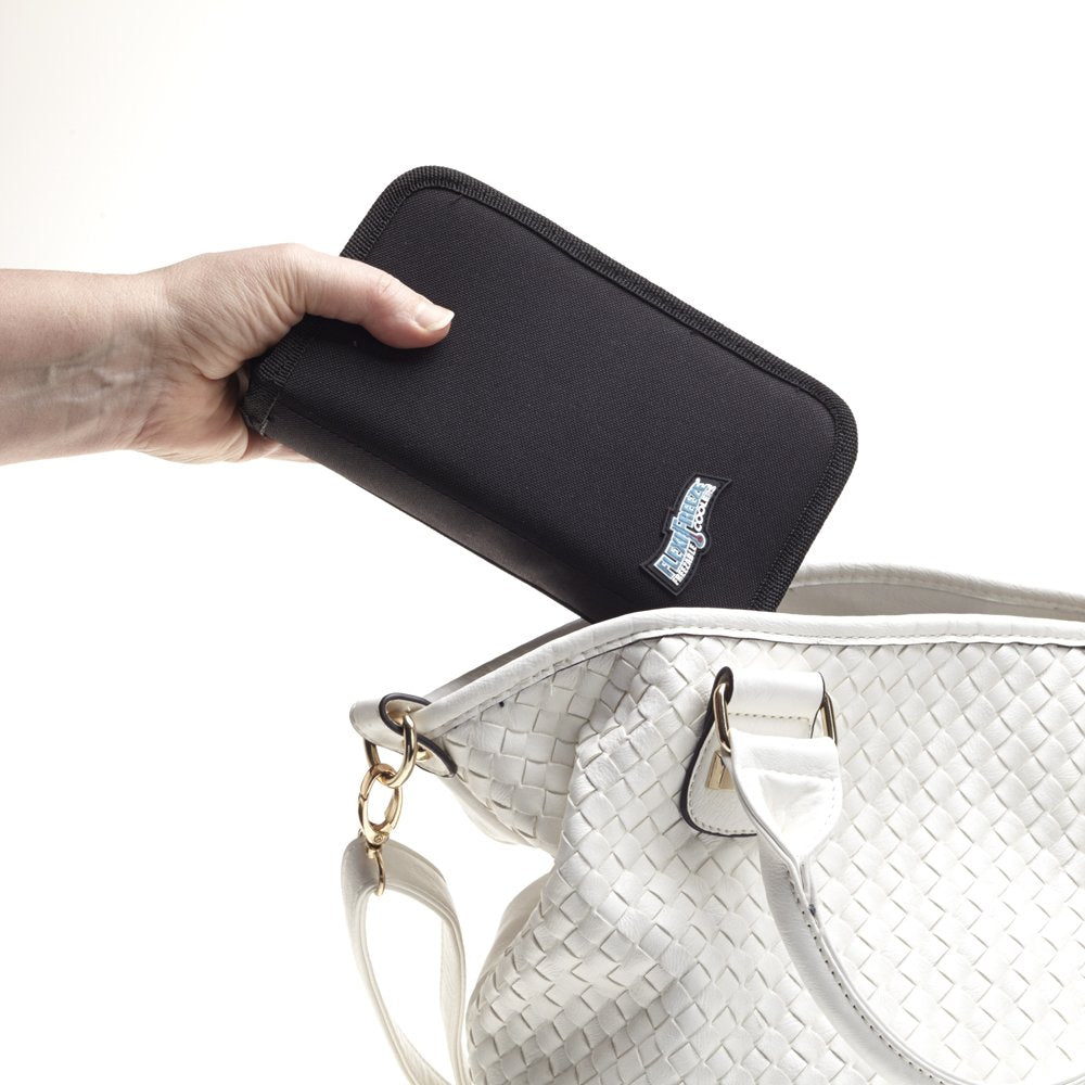 Keep breastmilk cool and fresh on the go with the FlexiFreeze Pocketbook Breastmilk Cooler. This black cooler is designed to fit in your pocketbook, providing a convenient solution for storing breastmilk while traveling or away from home.