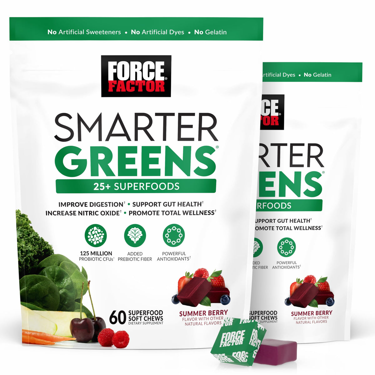 FORCE FACTOR Smarter Greens Superfood Chews, 2-Pack, Greens and Superfoods with Probiotics, Antioxidants, and Fiber, Greens Supplement to Support Digestion, Nitric Oxide, and Energy, 120 Soft Chews
