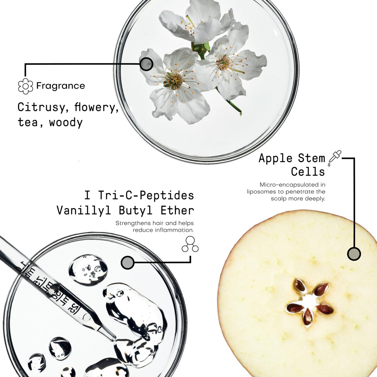 Short Product Description :: Gentle volumizing shampoo for sensitive scalps. Removes impurities (sebum, DHT, etc.)and revitalizes the hair. Prepares the scalp to be more receptive to the Activator Drops or Reinforcing Energizing Spray while strengthening and revitalizing the hair with nourishing substances in the Apple Plant Stem Cell Extract.