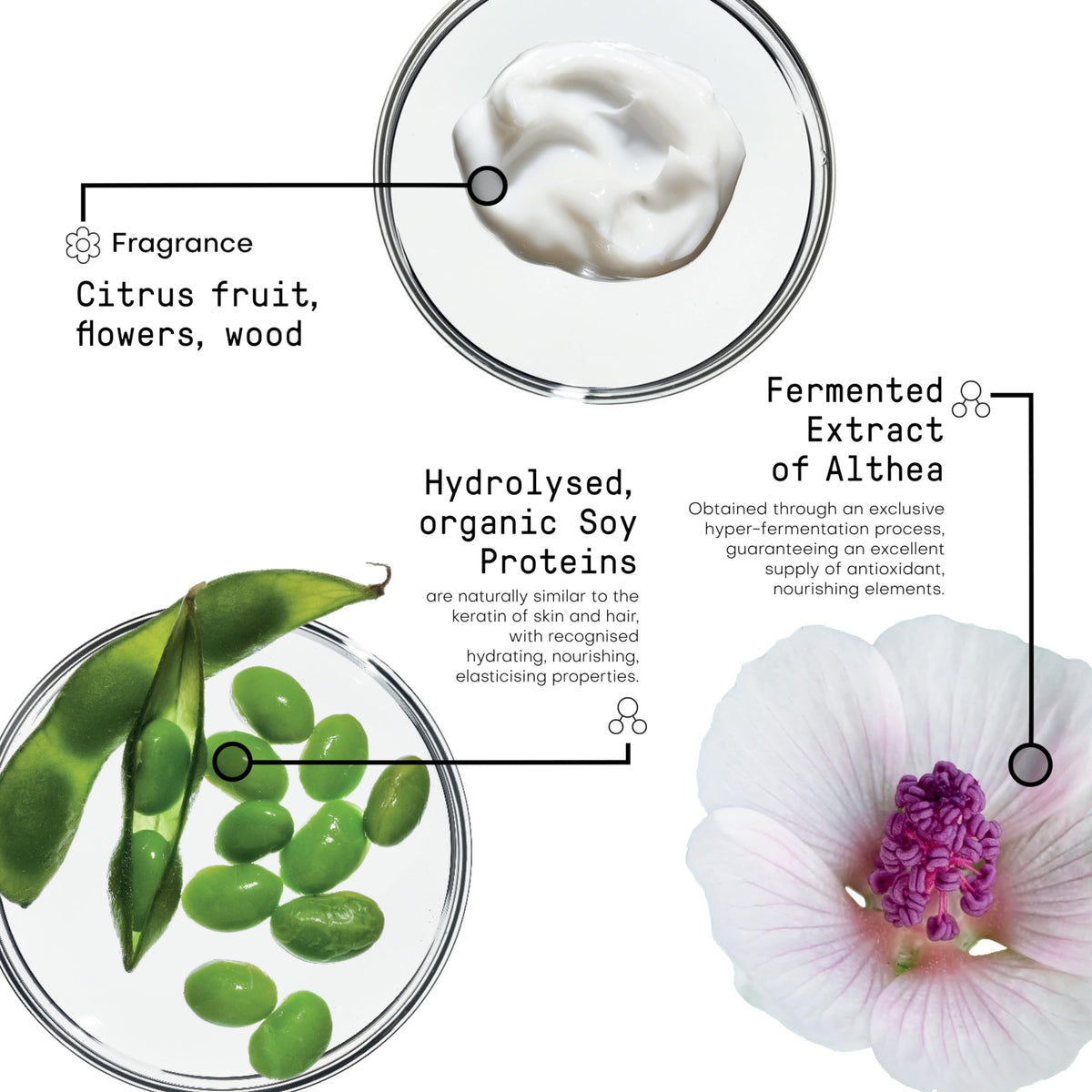 Short Product Description :: Enriched with Fermented Extract of Althea and Hydrolyzed Soy Proteins, with soothing, softening properties, cleanses gently and hydrates without weighing hair with extensions down, making it easy to detangle. Hair remains extremely easy to comb, soft, and silky.
