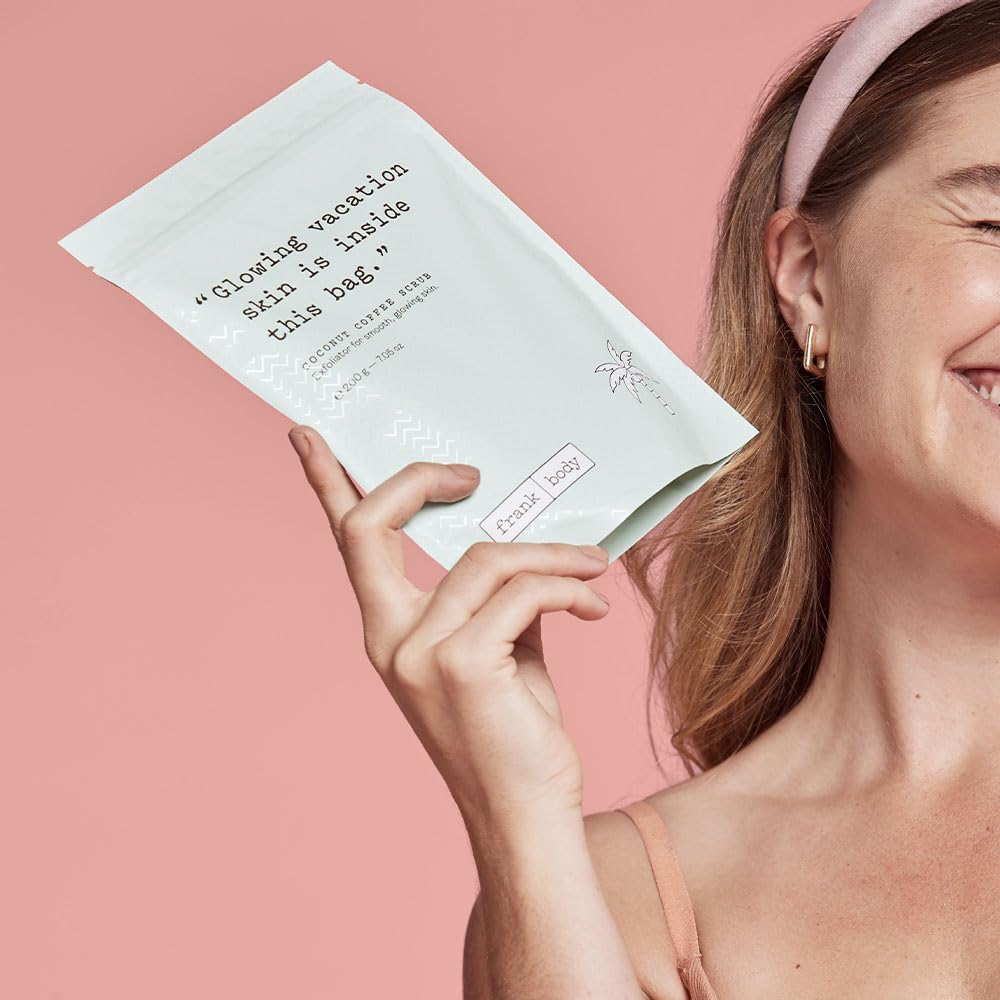 Frank Body Coconut Coffee Scrub | Natural, Vegan, Cruelty Free Exfoliating Body Scrub Firms, Tones, and Brightens with Coffee Grinds, Grapeseed Oil, Coconut Oil, and Jojoba Beads | 7.05 oz / 200 g