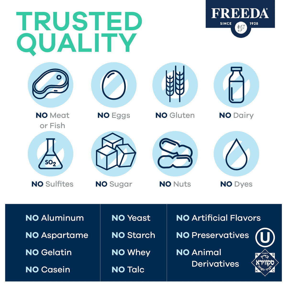 FREEDA Vitamin C provides buffered Vitamin C 500mg capsules for powerful antioxidant and immune support. These kosher capsules are gentle on the stomach and offer essential Vitamin C for overall well-being.