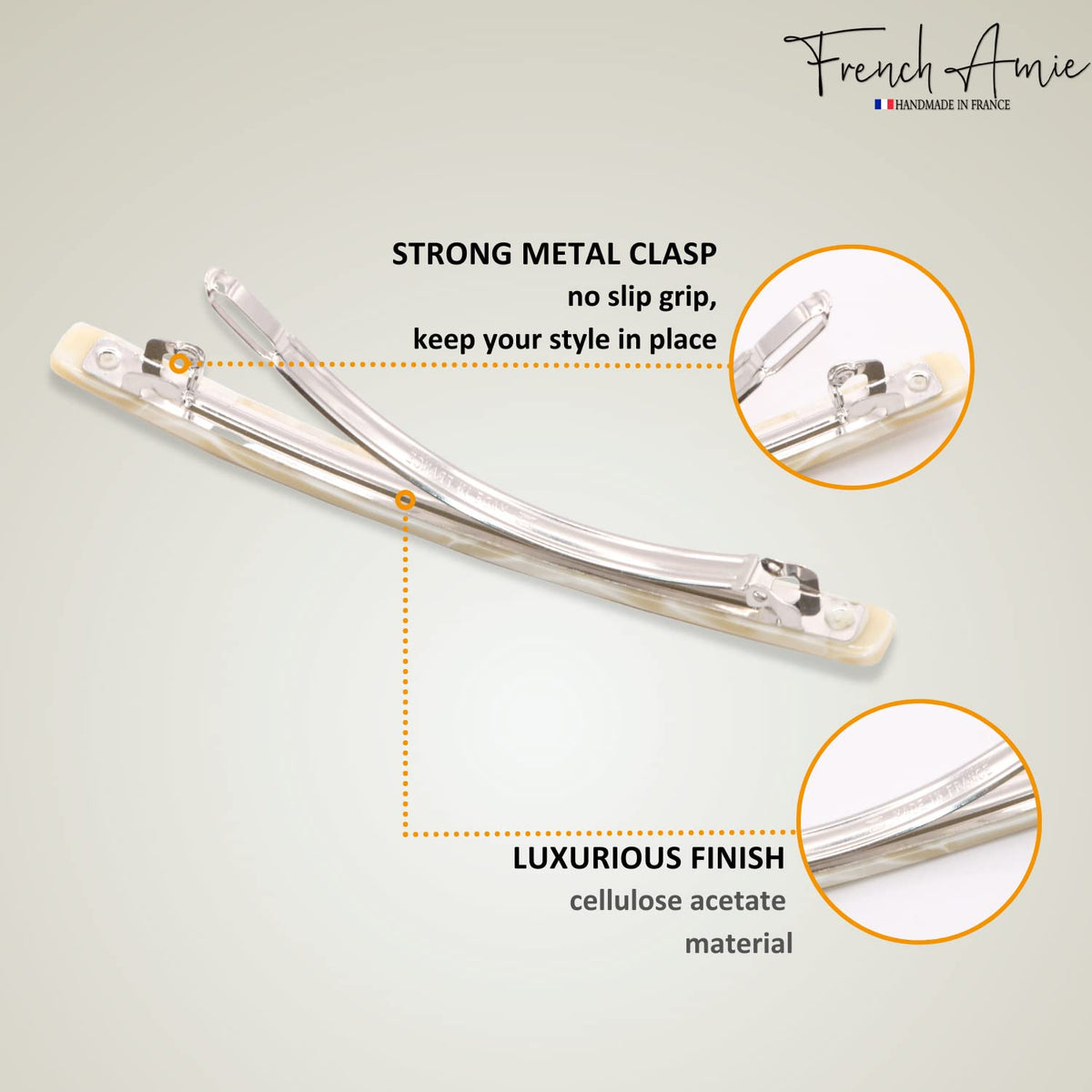 French Amie Long And Thin Handmade Celluloid Pearl Ivory Hair Clip Barrette 4 Inches (Cream Nouget)
