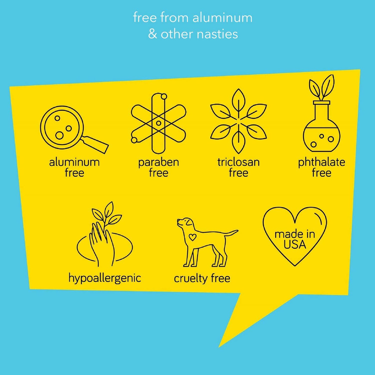 | material type free | Toxin Free Never uses Aluminum, Parabens, Triclosan, Phthalates, or other harsh chemicals and irritants |