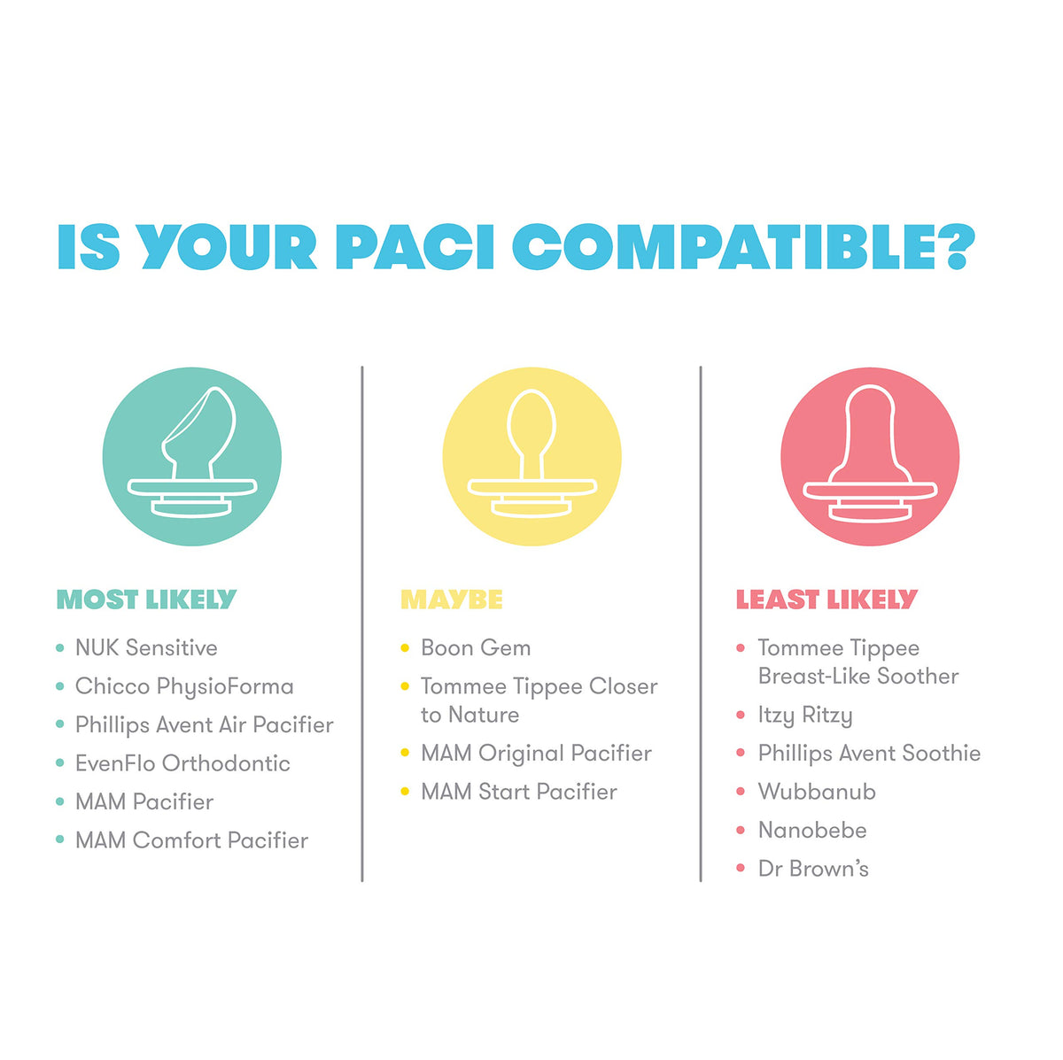 Includes multiple pacifier sizes