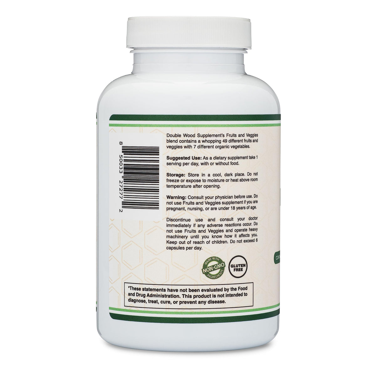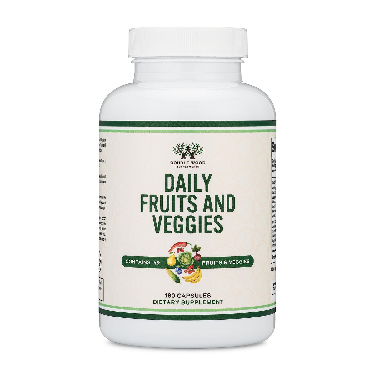 Fruits and Veggies Supplement (Daily Blend of 49 Different Fruits and Vegetables, 23 Veggies and 29 Fruits) 1,500mg Servings, 180 Capsules (No Fillers, Vegan Safe, Non-GMO) by Double Wood
