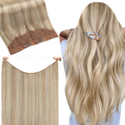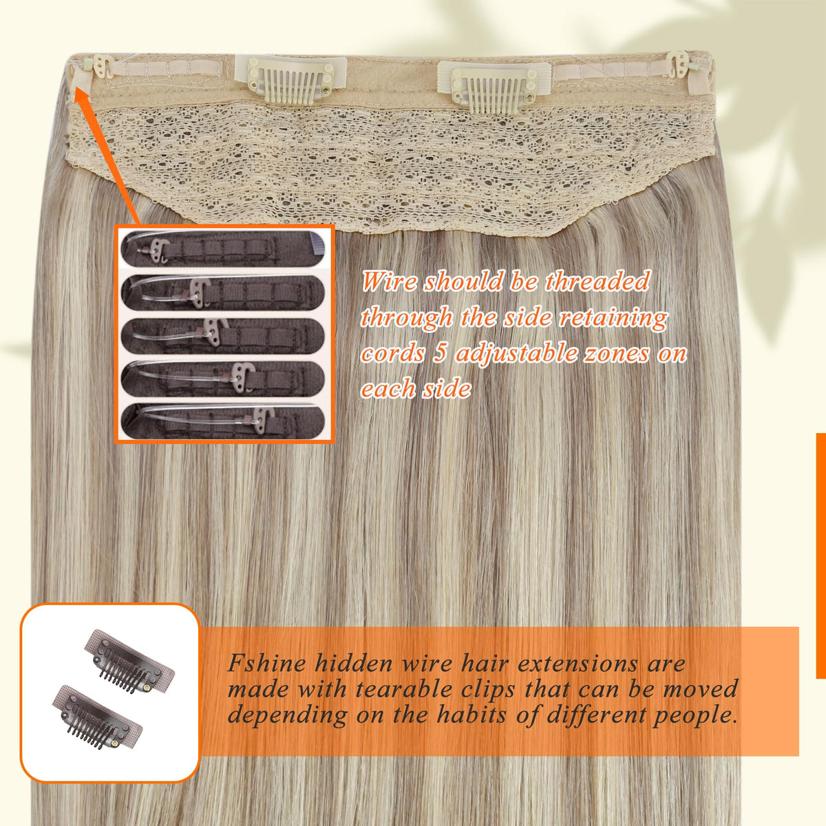 Fshine Invisible Human Hair Extensions 20 Inch Secret Crown Headband Wire in Hair Extension with Removable Clips 80 Gram Layered Wire Hair Extensions Ash Blonde 18 Highlighted Bleach Blonde 613