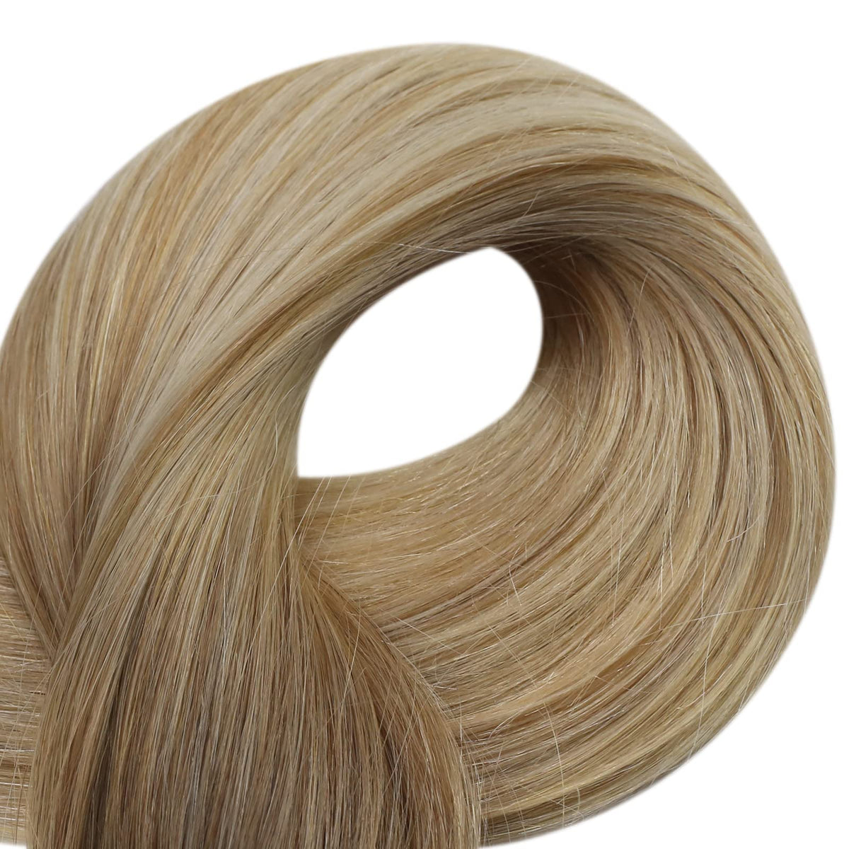 Add volume and length with Fshine Tape Hair Extensions in Color 6 Fading to 27 Honey Blonde. These skin weft extensions blend seamlessly for a natural look.