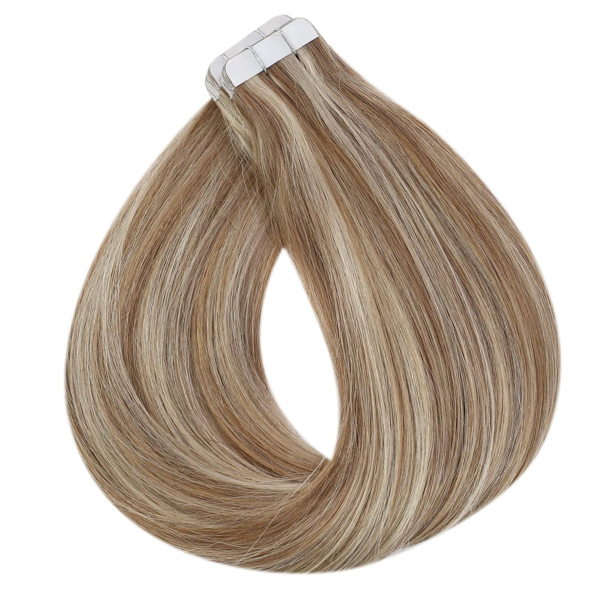 Fshine Tape In Hair Extensions Higlight Color 10 and 613 Yellow Blonde Hair Extensions Tape Ins 20 Pcs 50 Grams Remy Seamless Human Hair Extensions