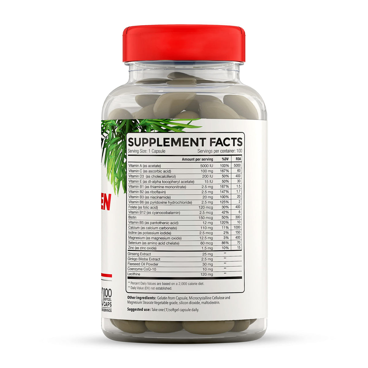 Support your immune health, heart health, and vitality with Full Life Multivita-Men Capsules. This multivitamin for men is a dietary supplement containing 100 capsules of 1000mg each.
