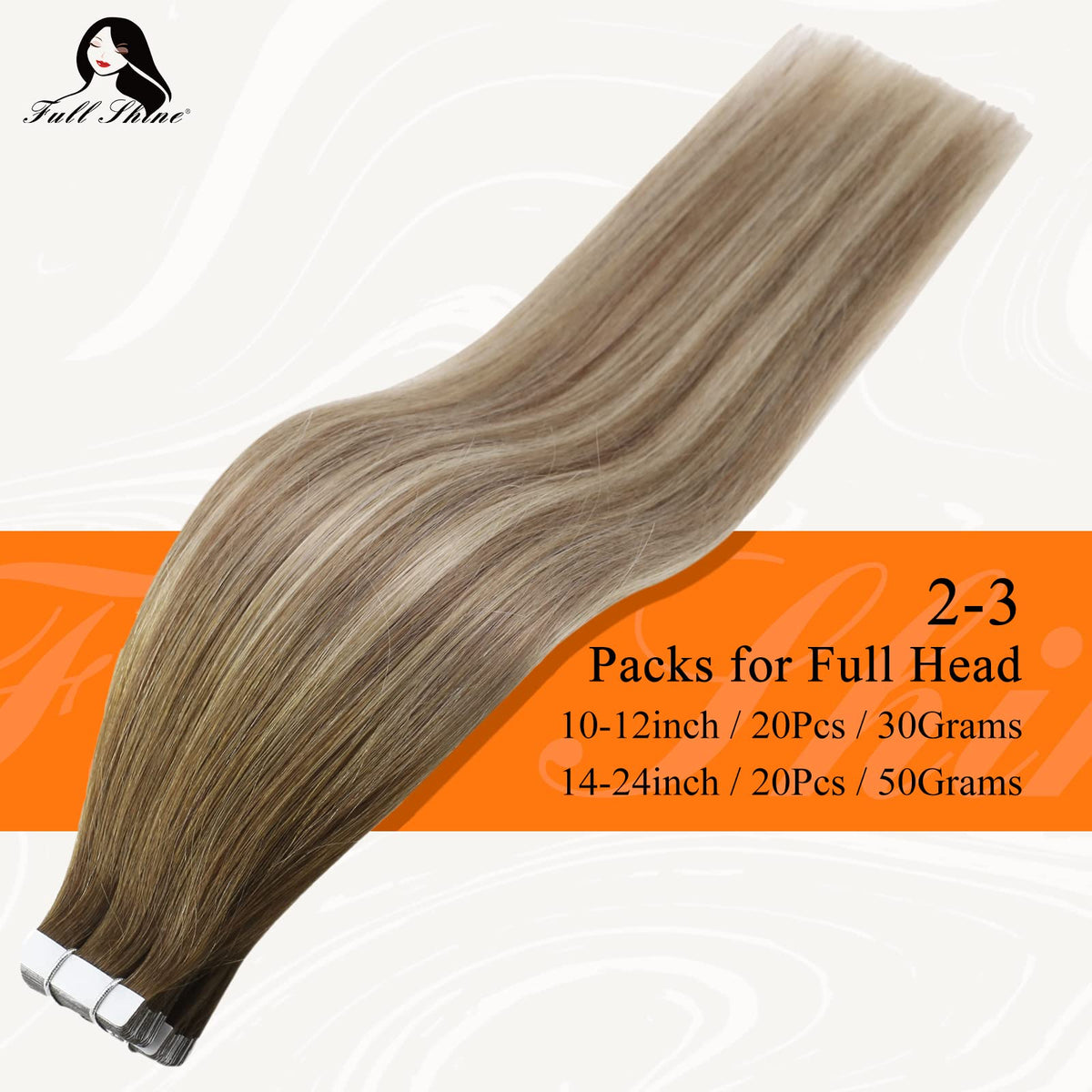 Full Shine Tape in Hair Extensions Human Hair offers a seamless and natural way to add length and volume to your hair. With a balayage color blend and adhesive application, these extensions blend effortlessly for a stunning look.