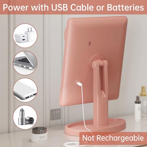FUNTOUCH Large Lighted Vanity Makeup Mirror (X-Large Model), Light Up Mirror with 35 LED Lights, Touch Screen and 10X Magnification Mirror, 360° Rotation Tabletop Cosmetic Mirror(Rose Gold)