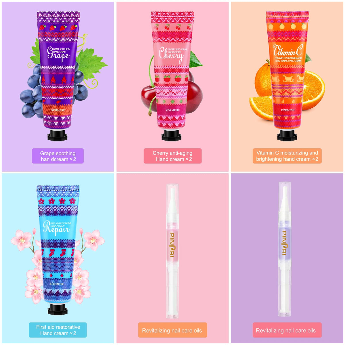Pamper your hands with Furnizone Hand Cream Gifts for Women. This set includes 8 travel-size hand lotions for dry cracked hands, along with 2 nail care oils. Perfect as a gift for Mother's Day, Valentine's Day, or a bridesmaid proposal, these hand creams provide luxurious care for your hands.