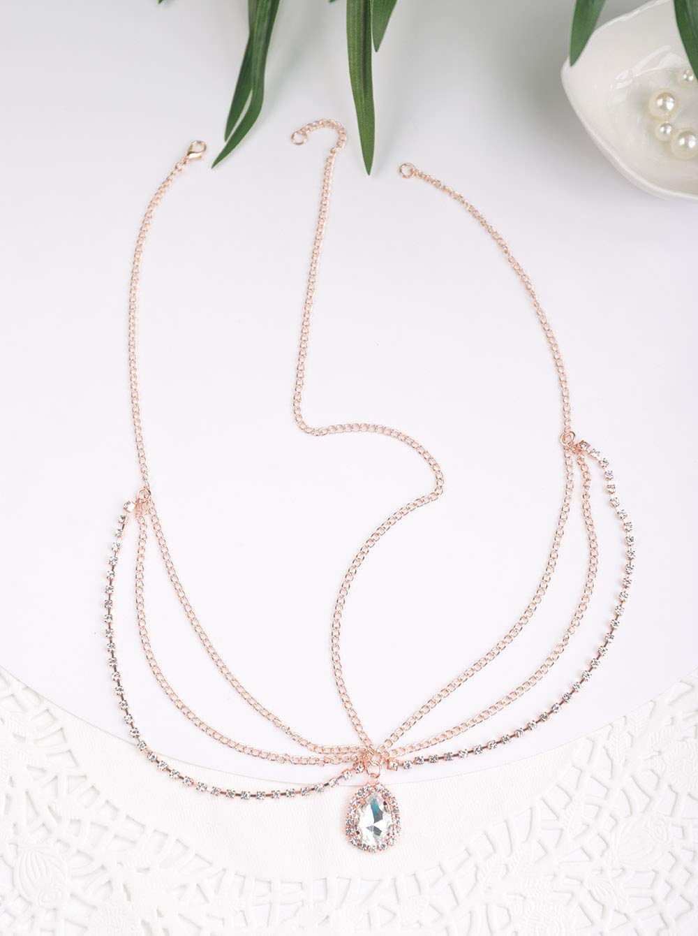 FXmimior Fashion Women Gypsy Bohe Halloween Charm Rhinestones Head Chain Vintage Rhinestones Crysatal Drop Headpiece Headband Wedding Prom Eveing Women Hair Accessories (gold)