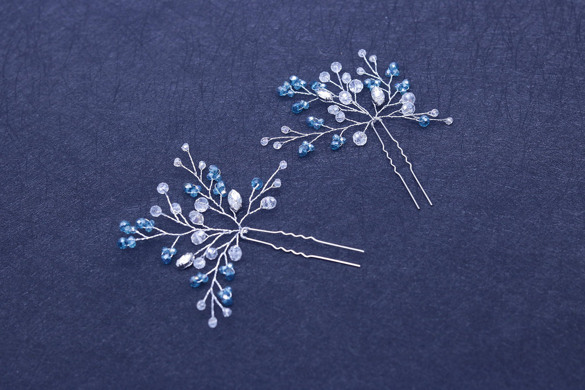 FXmimior Bridal Women Blue Vintage Wedding Party Hair Pins Crystal Hair Accessories( pack of 2)