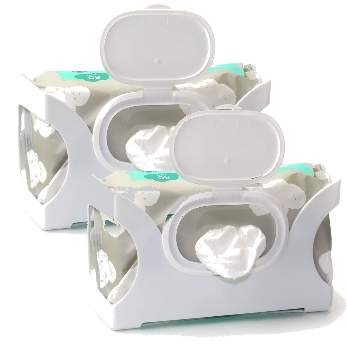 Gadjit Wet Wipes-Baby Wipe Wall Dispenser (2 Pack-WHITE) | Mounts on a Wall and Holds Up to a 84 Count Pack of Wipes | Keeps Wipes Within Easy Reach | One-Handed Wipes Dispensing Diaper Station