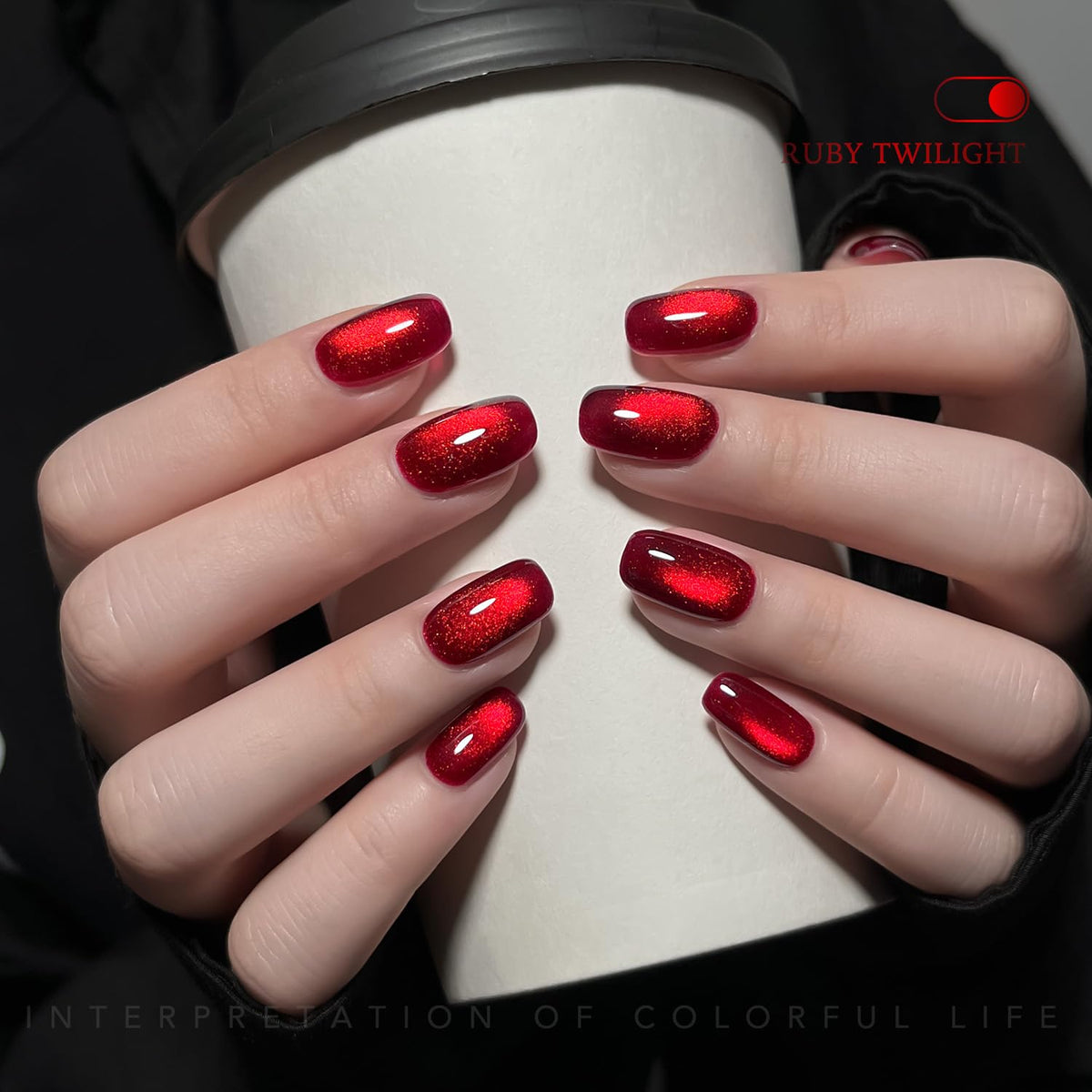 GAOY Red Cat Eye Gel Nail Polish offers a mesmerizing nail transformation with its 16ml Glitter Holographic formula. This nail polish features a unique magnet that creates a reflective and translucent effect, giving your nails a stunning 2907 Ruby Twilight finish.
