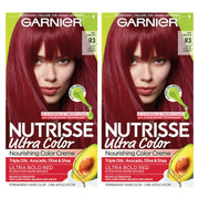 Transform your hair color with Garnier Hair Color Nutrisse Ultra Color Nourishing Creme. This pack of 2, R3 Light Intense Auburn (Red Hibiscus) permanent hair dye offers vibrant color and nourishment for your hair.