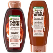 - Garnier Whole Blends Smoothing Hair Care Kit includes a Smoothing Coconut Oil Shampoo and Conditioner to control and tame frizzy hair