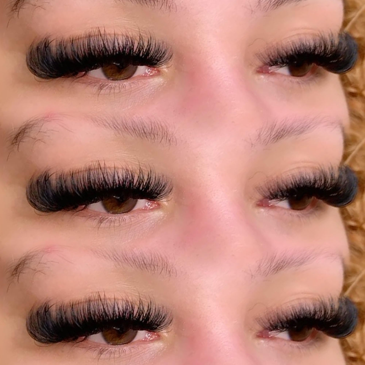Directions :: Curling natural lashes, grabbing lashes from the root, brushing lashes with the lash bond, applying clusters, and sealing the lashes.