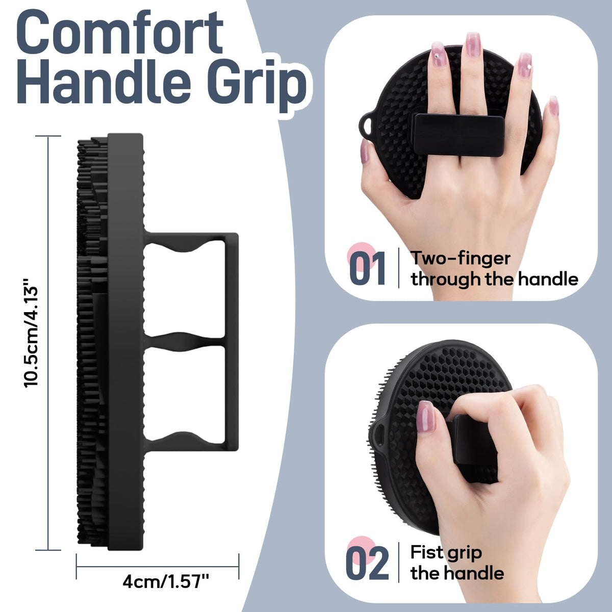 GEENOA Silicone Body Scrubber 2PCS, Durable Silicone Loofah with Waved Bristles and Non-Slip Handle, Hygienic Body Buffer Shower Scrubber for Gentle Exfoliating & Lathering(Black+Pink)