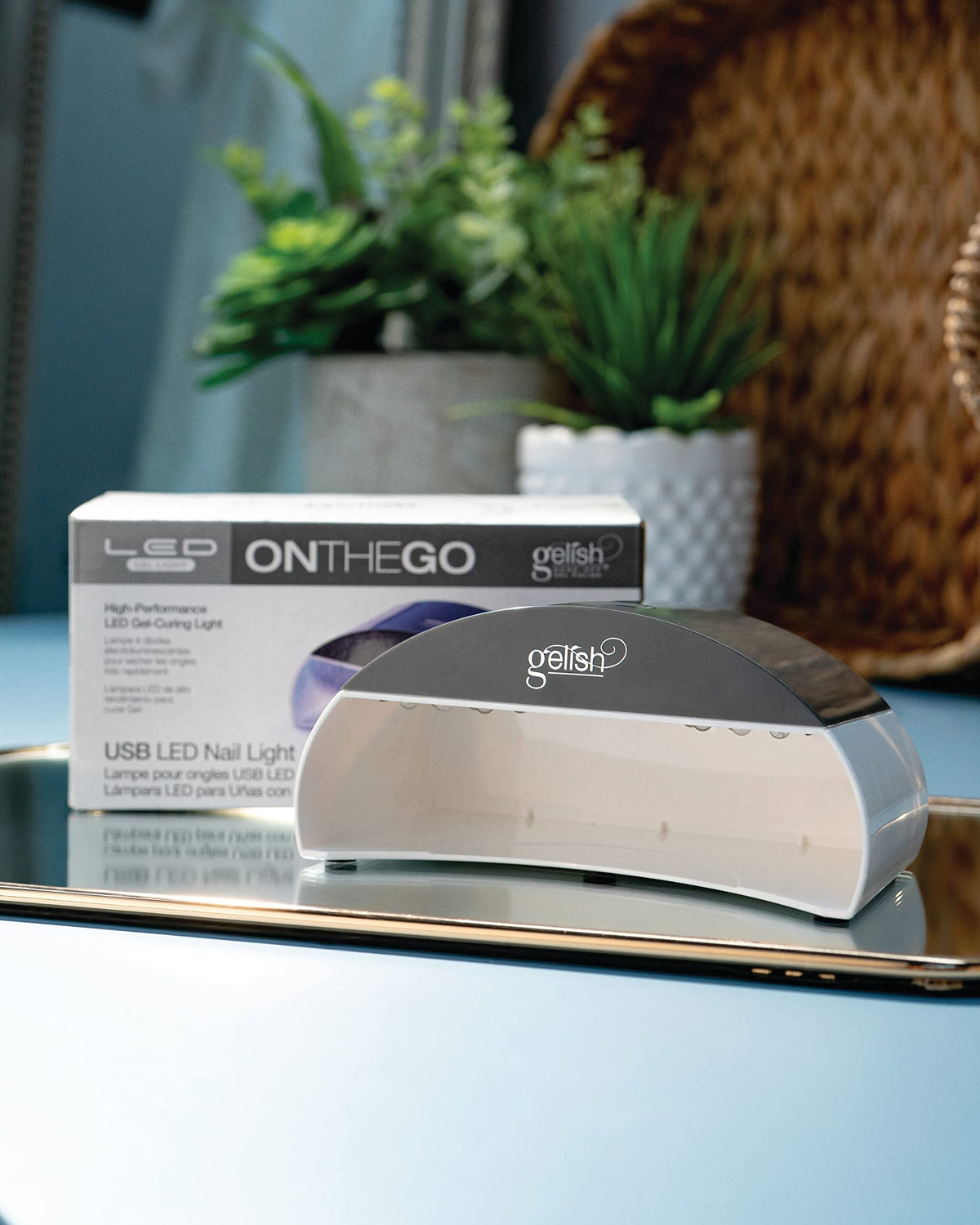 Experience salon-quality gel nails at home with the Gelish Mini On The Go LED Light. This portable nail lamp offers 45-second curing, USB power, and professional results.