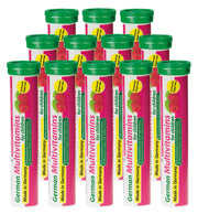 German Multivitamin for Children offers 8 essential vitamins in 240 vegan drink effervescent tablets with a delightful raspberry flavor. Made in Germany to ensure quality and safety.