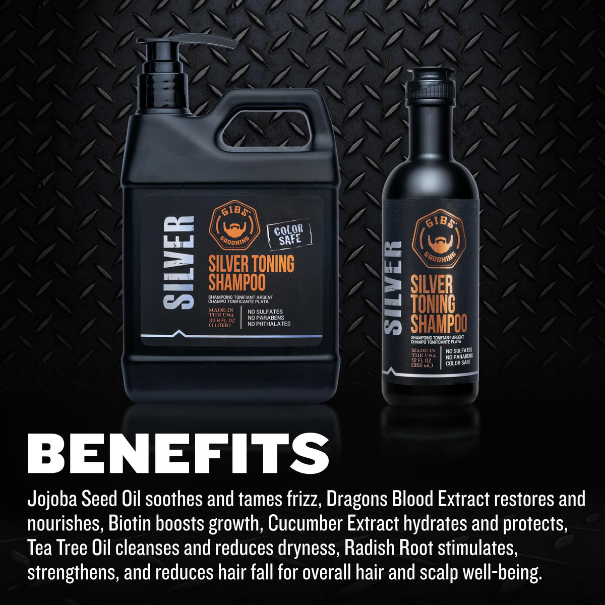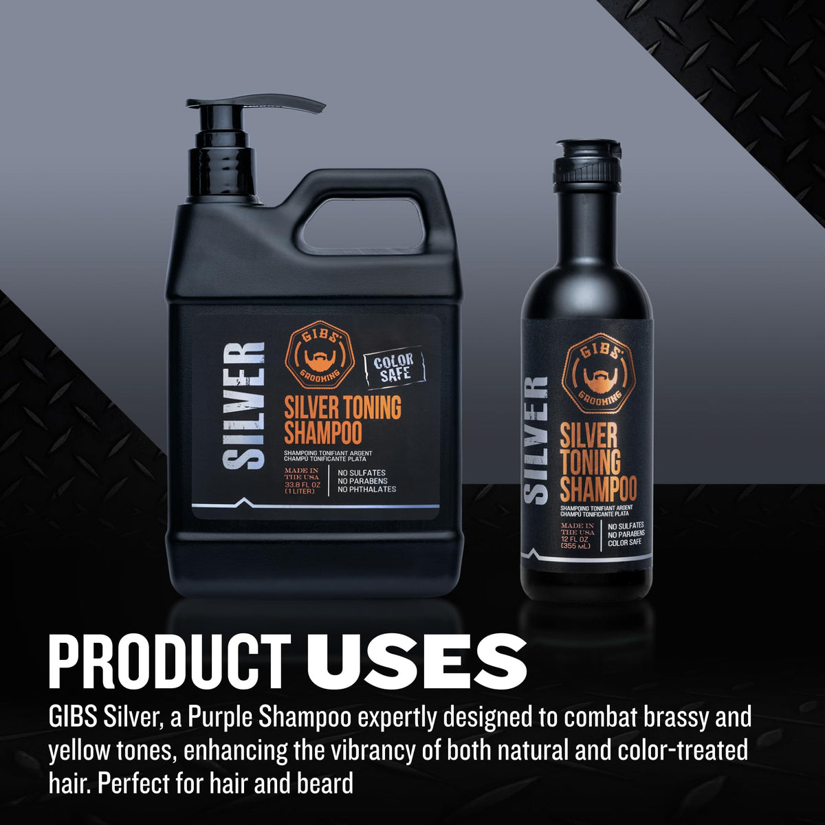 GIBS Silver Shampoo, Purple Shampo for Men and Women, Reduces Brassy and Yellow Tones, Color Safe, 12 oz