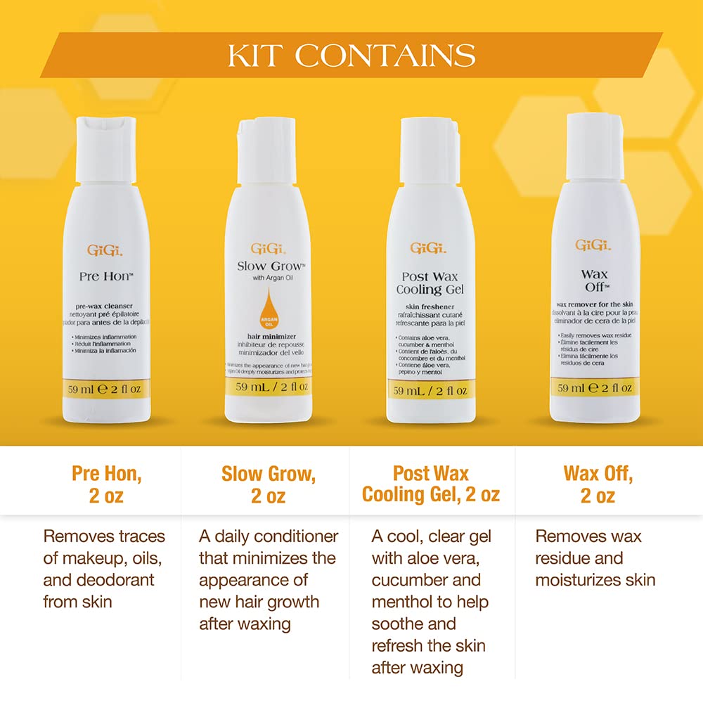 Experience smooth and flawless skin with the GiGi Post Waxing Essentials Kit. This pre and post-wax care set is designed to prepare your skin before waxing and soothe it after, ensuring a comfortable hair removal process.