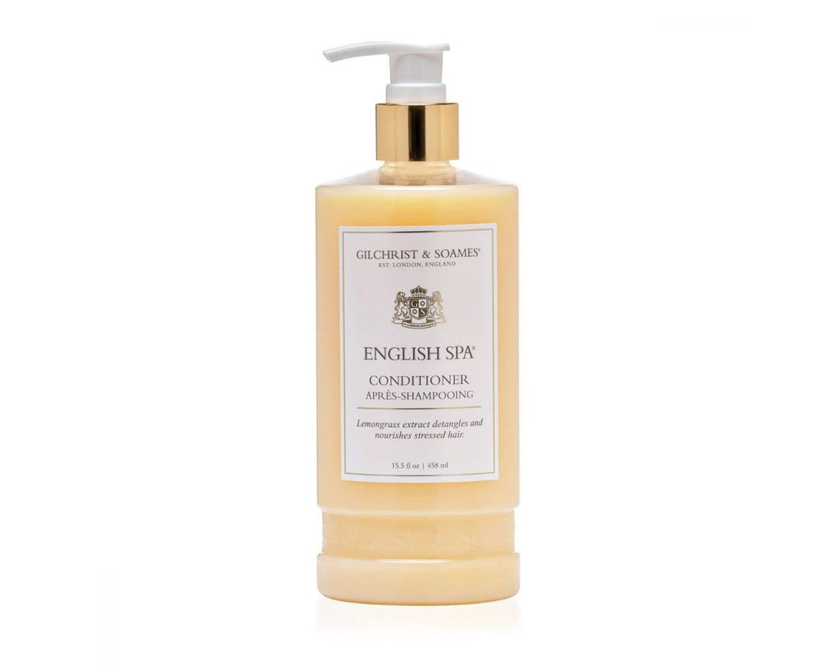 Gilchrist & Soames English Spa Conditioner is a luxurious hair care solution with citrus and herbal notes suitable for all hair types. This 15.5 oz. conditioner provides deep hydration, detangling, and a refreshing scent for a spa-like experience at home. Free from parabens, sulfates, and phthalates, this conditioner pampers your hair with natural goodness.