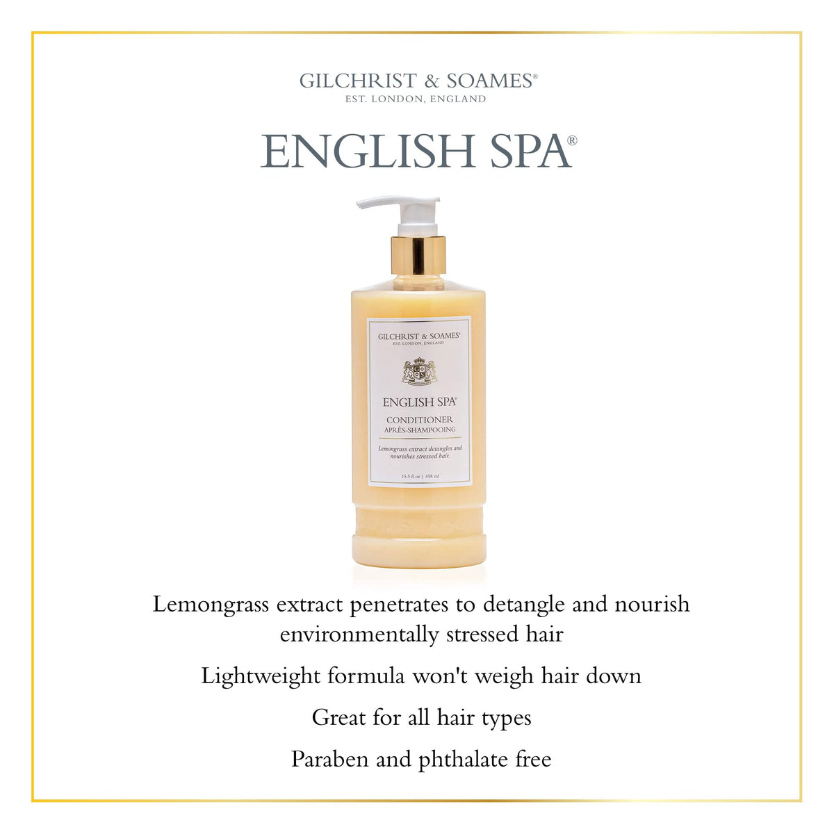 Gilchrist & Soames English Spa Conditioner - 15.5oz - Citrus and Herbal Notes, All Hair Types, Zero Parabens, Sulfates, and Phthalates