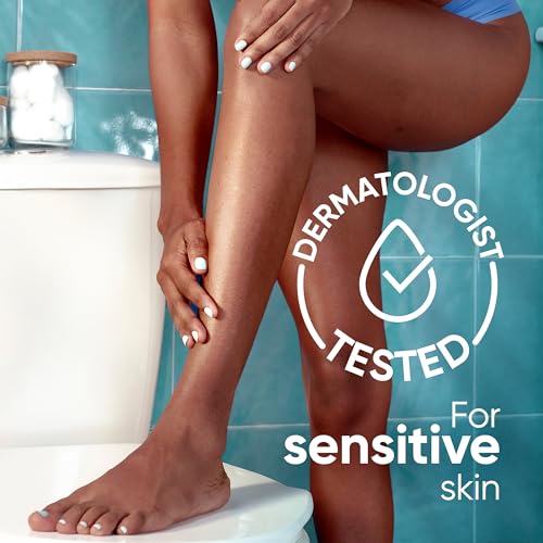 Soak the hair for 23 minutes with warm water, lather up with Satin Care Sensitive Skin shave gel, and shave with a Venus razor. Rinse after shaving.