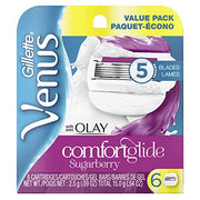 Gillette Venus ComfortGlide with Olay Sugarberry Women's Razor Blade Refills offer a luxurious shaving experience. With 6 blade refills, these razors provide a close shave while moisturizing the skin. Enjoy smooth, silky skin with every shave.