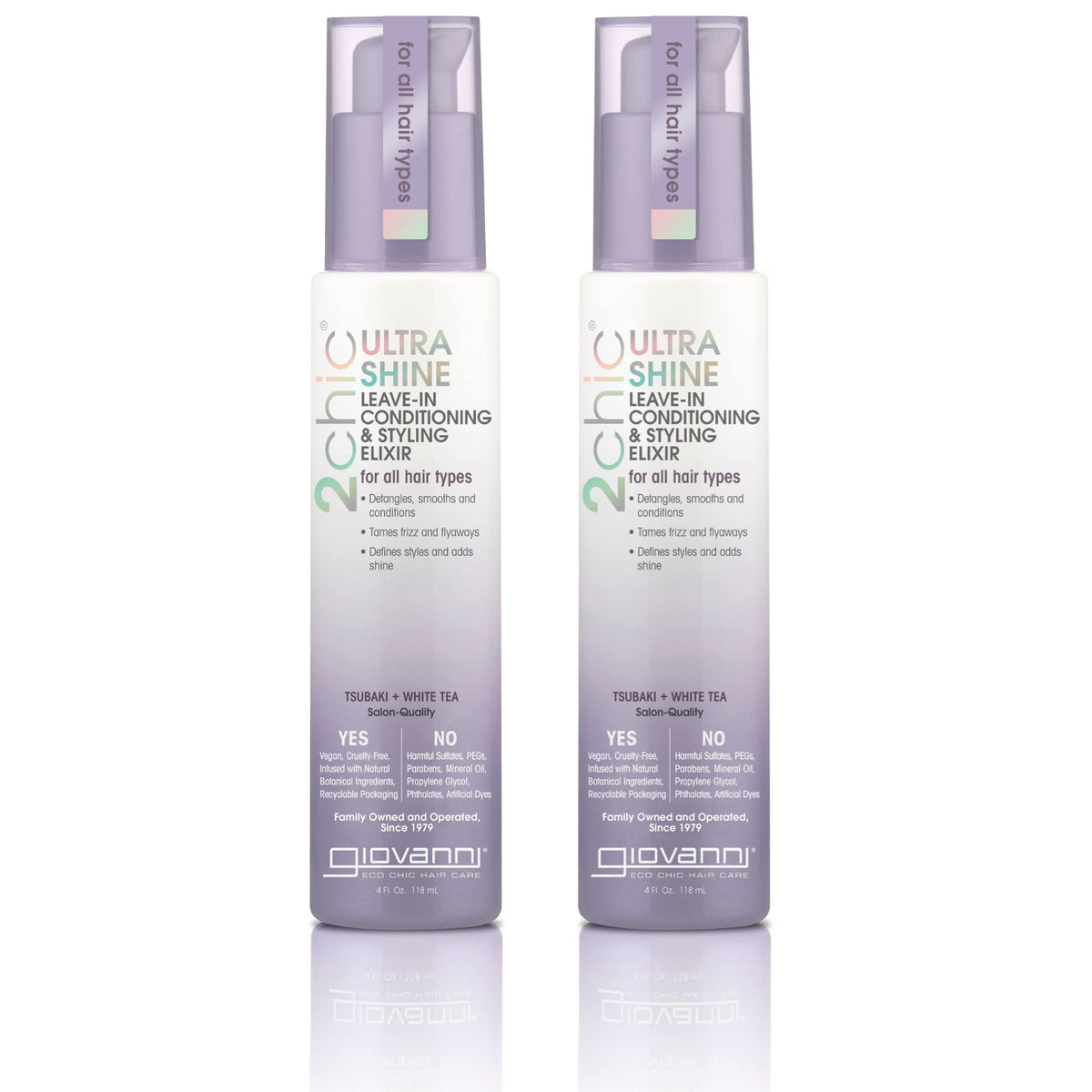 GIOVANNI 2chic Ultra Shine Leave-In Conditioning & Styling Elixir - Hair Serum for All Hair Types, Leave in Hair Treatment, Tsubaki Seed Oil & White Tea, Detangles, Smooths & Conditions - 4oz (2 Pack)