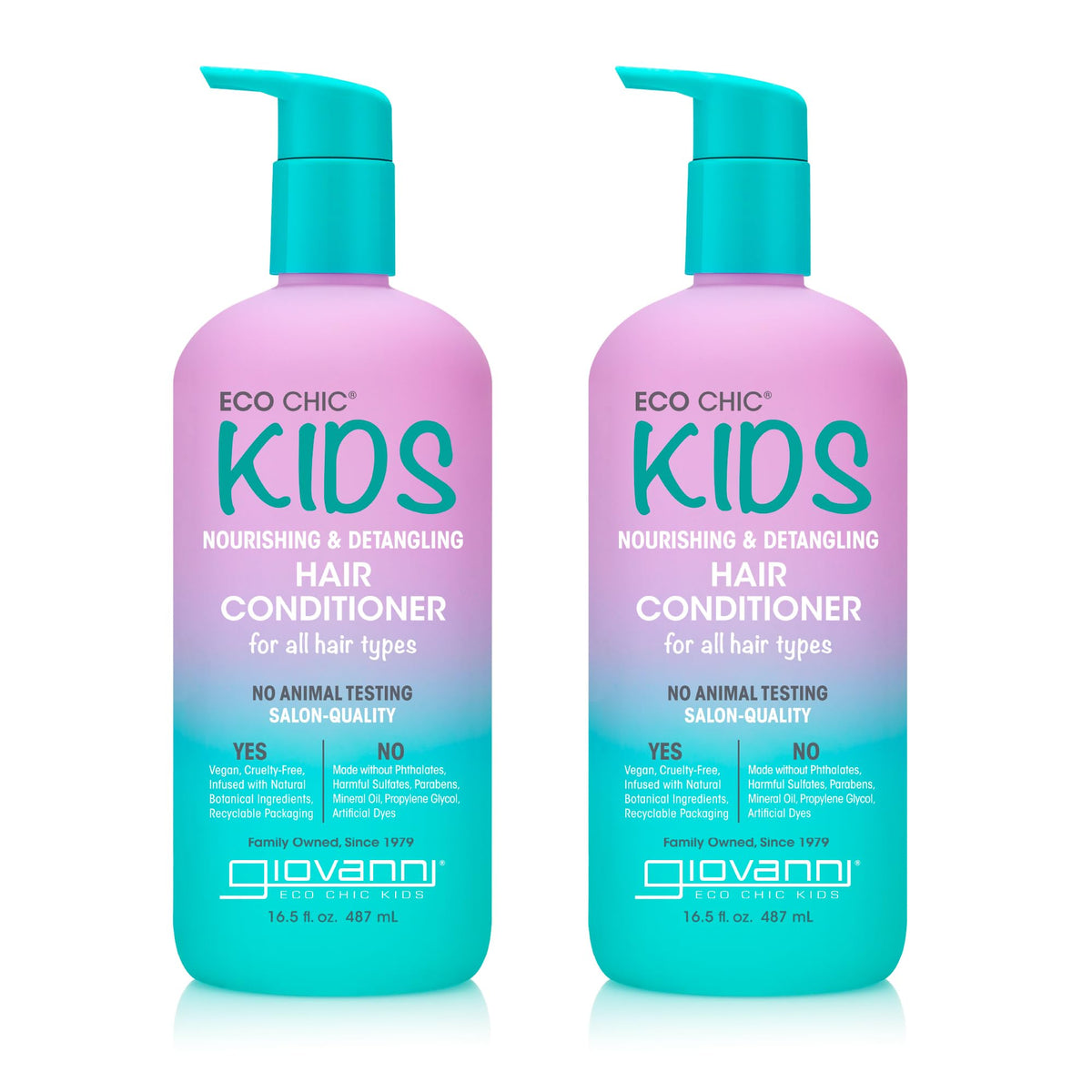 GIOVANNI Eco Chic Kids Nourishing & Detangling Hair Conditioner - Kids Conditioner Detangler, Conditioner For Kids, Kids Hair Conditioner, For All Hair Types, Salon Quality - 16.5 Fl Oz (Pack of 2)