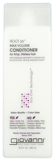 Boost your hair volume with Giovanni Root 66 Max Volume Conditioner. This 8.5 oz pack of 2 provides maximum volume and body for a stunning hair transformation.