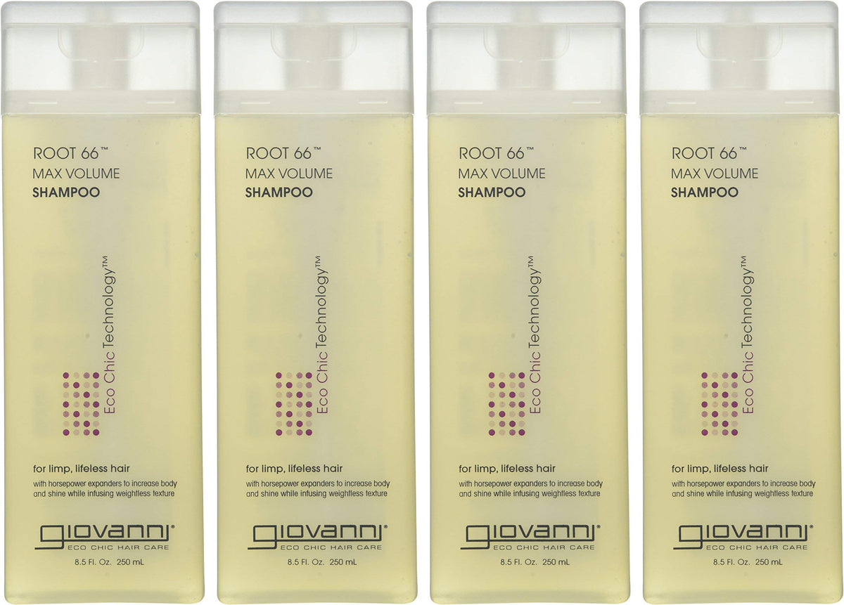 GIOVANNI Root 66 Max Volume Shampoo, 8.5 oz. for Fine Lifeless Hair, Rich in Nutrients, Pro-Vitamin B5, Horsetail Extract, Sea Salt, Kiwi, Sulfate Free, No Parabens, Color Safe (4 Pack).