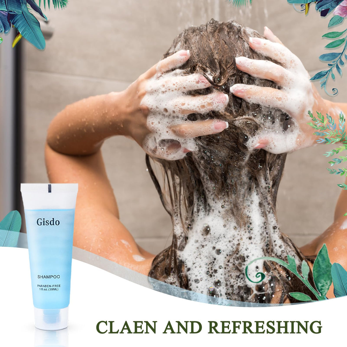 Convenience meets quality with Gisdo 50 Pack Travel Size Shampoo. This bulk pack of 30mL hotel shampoo supplies is perfect for guests, Airbnb essentials, and travel toiletries, ensuring a hassle-free and enjoyable stay wherever you go.