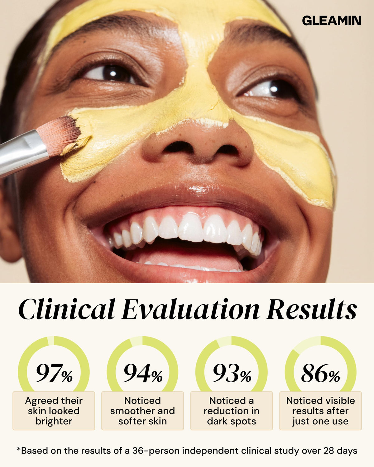 - Radiant Skin in Just 10 Minutes: Achieve bright and even skin with our turmeric face mask, formulated with Vitamin C-rich Kakadu Plum, Desert Lime, and signature Turmeric. In a study, 100% of users saw more radiant and healthy-looking skin after 12 uses. This brightening face mask helps diminish dark spots over time, revealing a glowing complexion with consistent use.