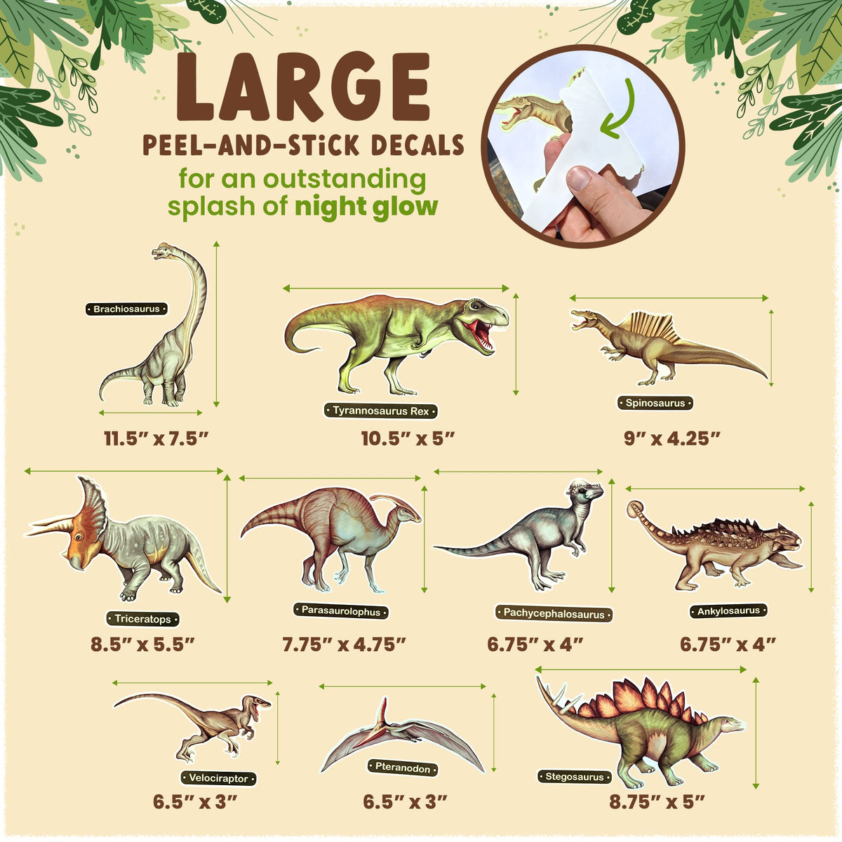Glow in The Dark Dinosaur Wall Stickers - 10 Large Bright Wall Decals for Bedroom Walls and Ceilings - for Boys Room and Girls Room - Set 1