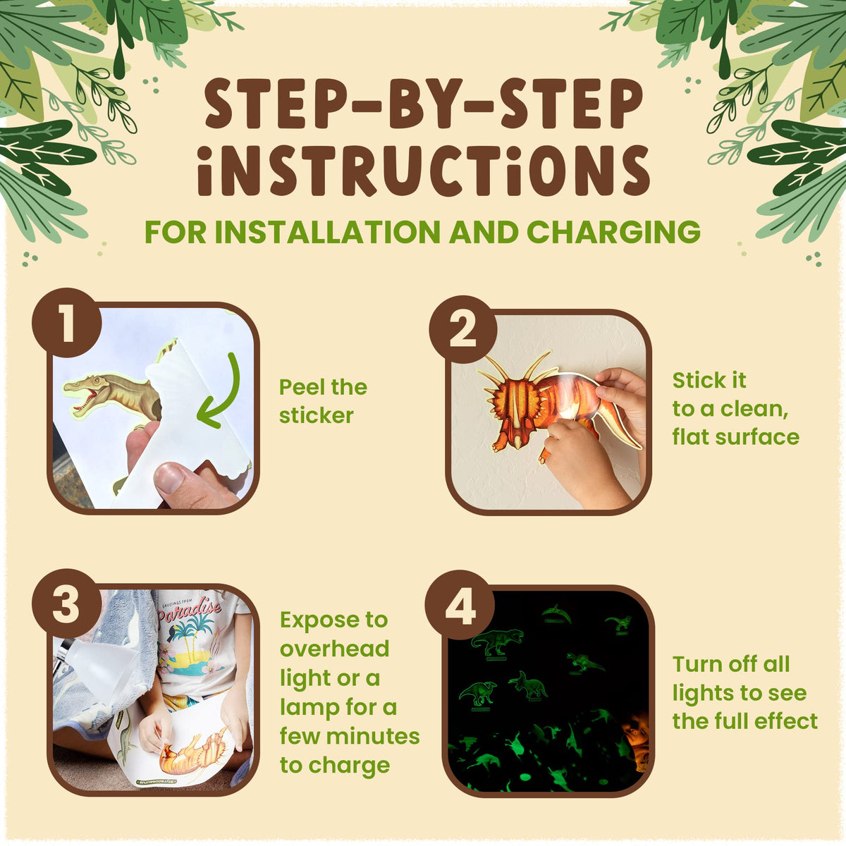 Glow in The Dark Dinosaur Wall Stickers bring a sense of adventure to any child's room. These 10 large bright wall decals create a captivating prehistoric world that ignites imagination and adds a fun element to bedtime. Perfect for boys and girls who love dinosaurs!